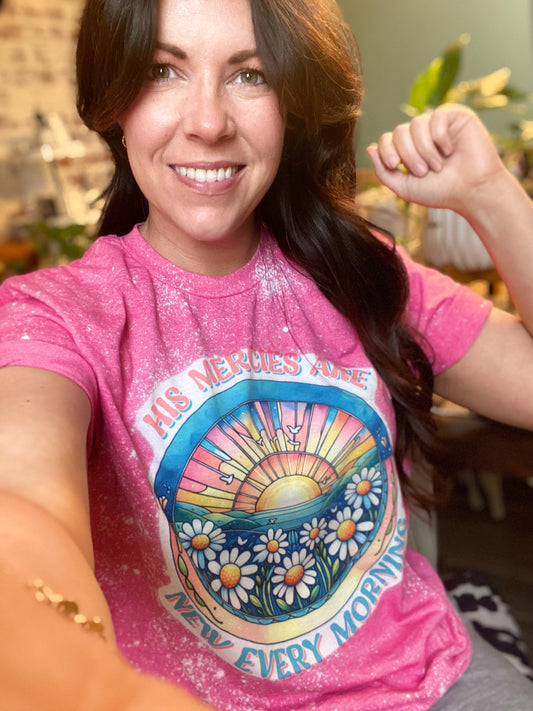 His Mercies are New | Hand Bleached Faith-Based Graphic Tee